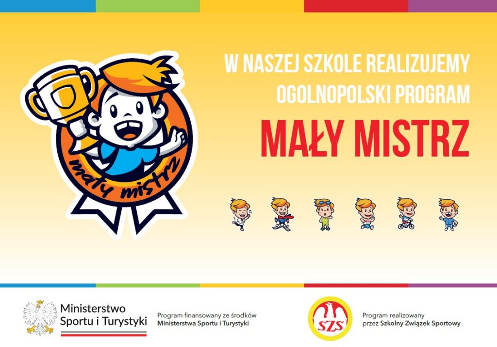 Mały Mistrz – zdrowie i sprawność młodych pokoleń! Miło nam poinformować , iż nasza szkoła od 2 września bierze udział w Ogólnopolskim programie Mały Mistrz. Program Mały Mistrz jest dedykowany