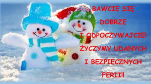 Kochani, zbliżają się wytęsknione przez Was ferie zimowe. Życzymy Wam, aby były one przede wszystkim śnieżne, pełne atrakcji i wypoczynku od codziennych obowiązków szkolnych. Abyście jak najwięcej czasu spędzali na świeżym powietrzu