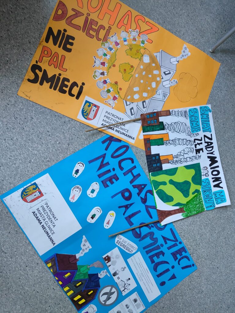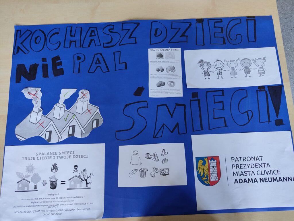 – w dniu 14.11.2023 odbył się happening z okazji „Dnia Czystego Powietrza”. Uczniowie naszej szkoły wraz z nauczycielami podążali ulicami Gliwic z hasłem KOCHASZ DZIECI, NIE PAL ŚMIECI! Na długo przed planowanym wyjściem uczniowie przygotowywali w szkole i swoich domach plakaty i ulotki. Całe wydarzenie objęte było patronatem Prezydenta Miasta Gliwice Adama Neumanna.