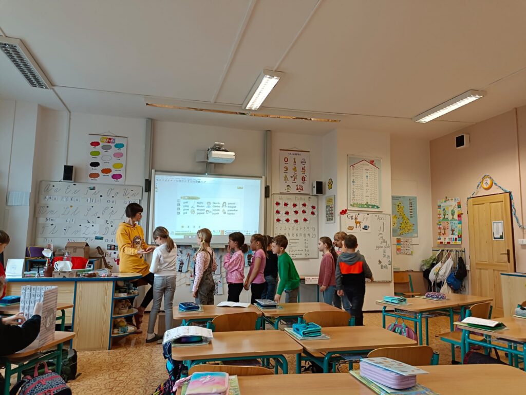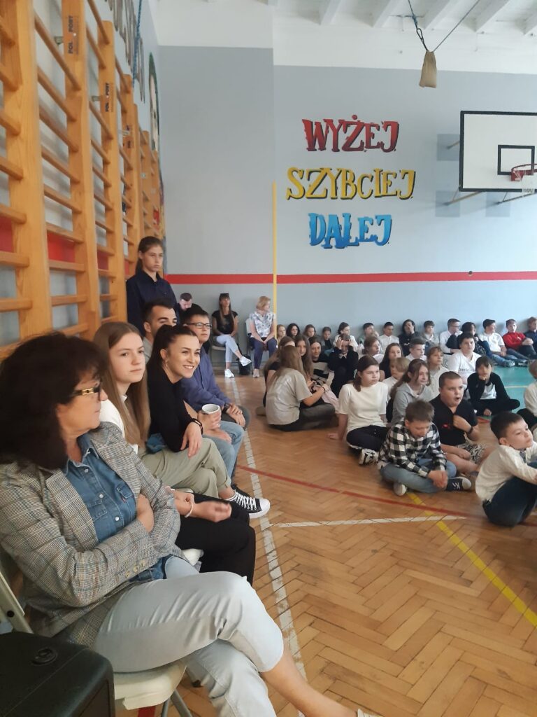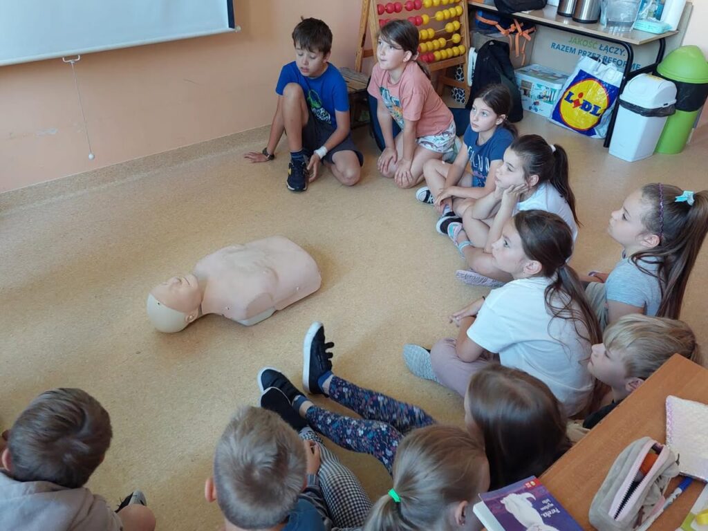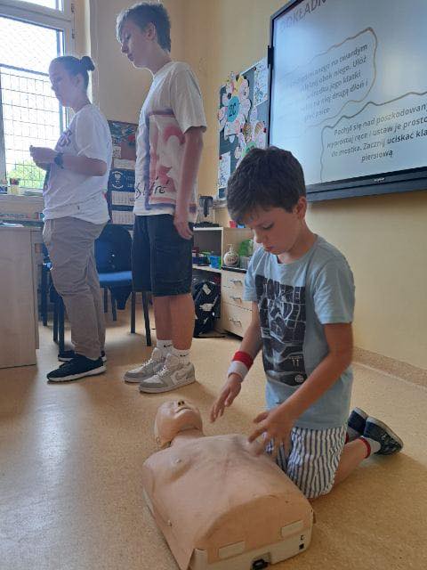 – Dni profilaktyki. Tematem przewodnim była pierwsza pomoc przedmedyczna, czyli jakie czynności należy podjąć na miejscu zdarzenia do czasu przybycia wykwalifikowanych służb medycznych. Uczniowie z klasy 8a: Agata, Szymon, Zosia i Gosia przygotowali świetne prezentacje i przedstawili je klasom 1-7, były również ćwiczenia praktyczne.