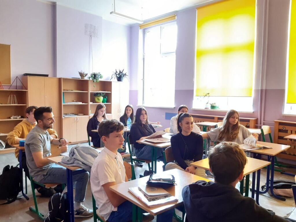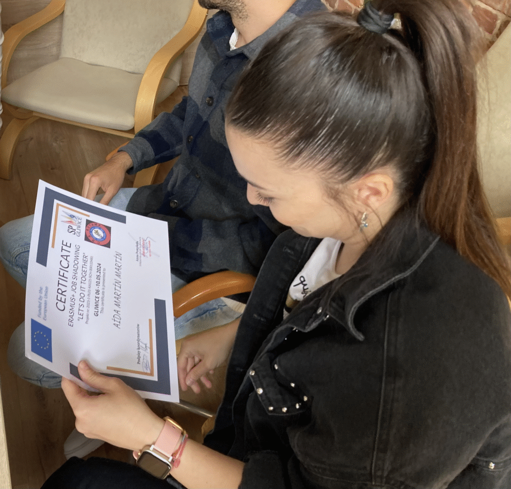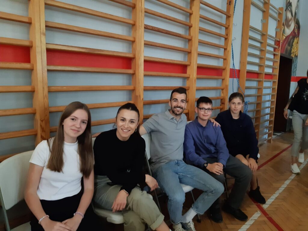 W ramach projektu Erasmus + w dniach 6-10.05.2024 r. przyjechali do nas nauczyciele z Hiszpanii – David i Aida. Po uroczystym przywitaniu nasi goście mieli okazję poznać tajniki naszej szkoły. W ramach swojej wizyty zwiedzali nasze miast i codzienne życie naszej szkoły.