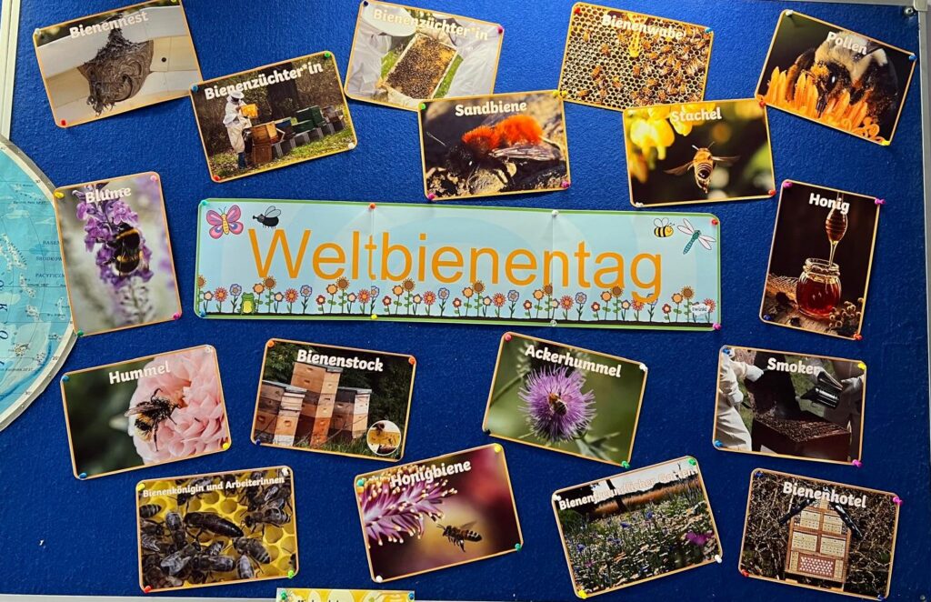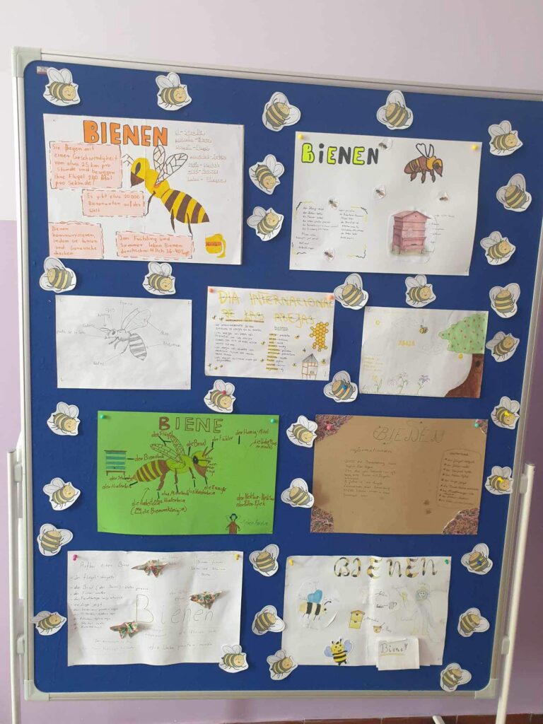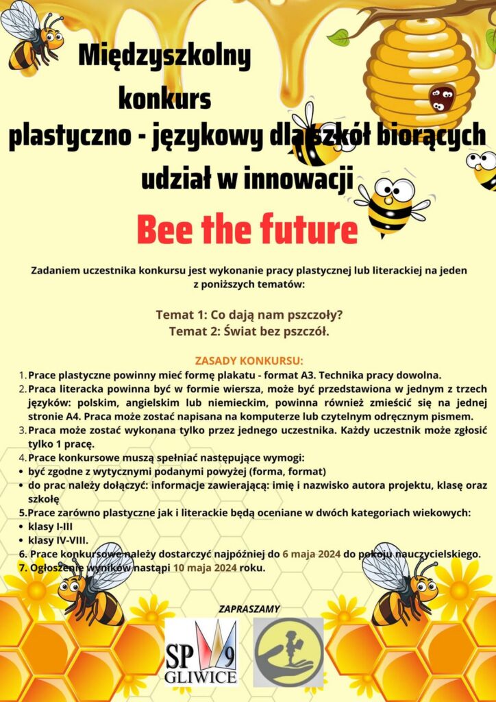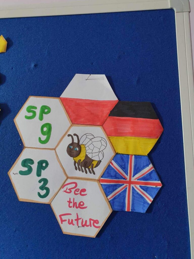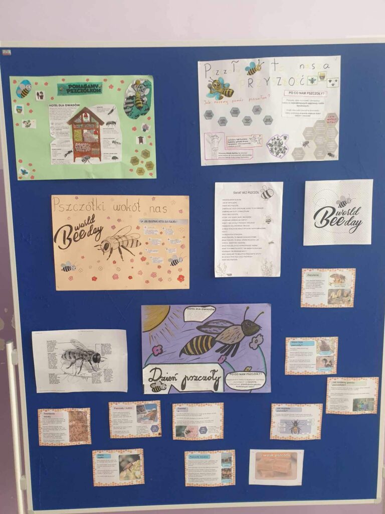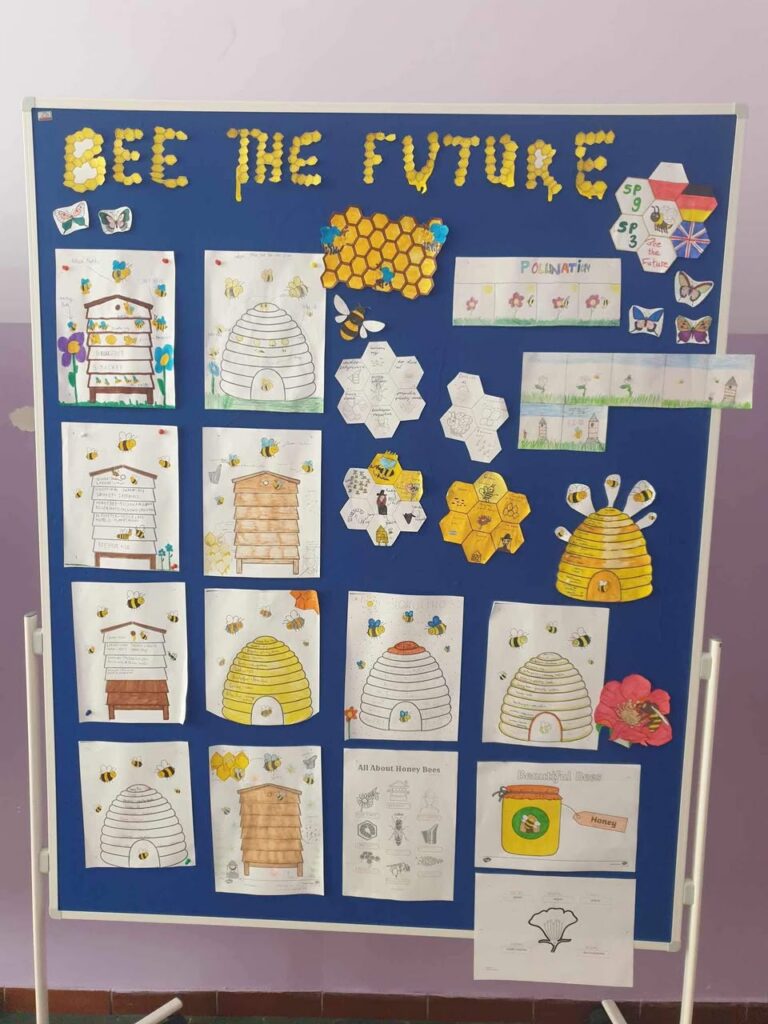 – w II semestrze uczniowie klas 5-7 biorą udział w innowacji pedagogicznej BEE THE FUTURE. Na lekcjach przyrody, języka angielskiego i niemieckiego uczniowie poznają znaczenie owadów zapylających, jakimi są pszczoły. Nasza innowacja powstaje we współpracy ze Szkołą Podstawową z Oddziałami Integracyjnymi nr 3 im. Arki Bożka w Gliwicach. W jej ramach 20 maja – obchodziliśmy Światowy Dzień Pszczół. Wydarzenia tego dnia są okazją do przypomnienia sobie znaczenia pszczół w środowisku i dla pozyskiwania żywności. To także pretekst do zastanowienia się, co możemy zrobić dla ochrony tych pożytecznych owadów. Na szkolnym korytarzu możemy podziwiać efekty naszej pracy w ramach innowacji „Bee the future”.