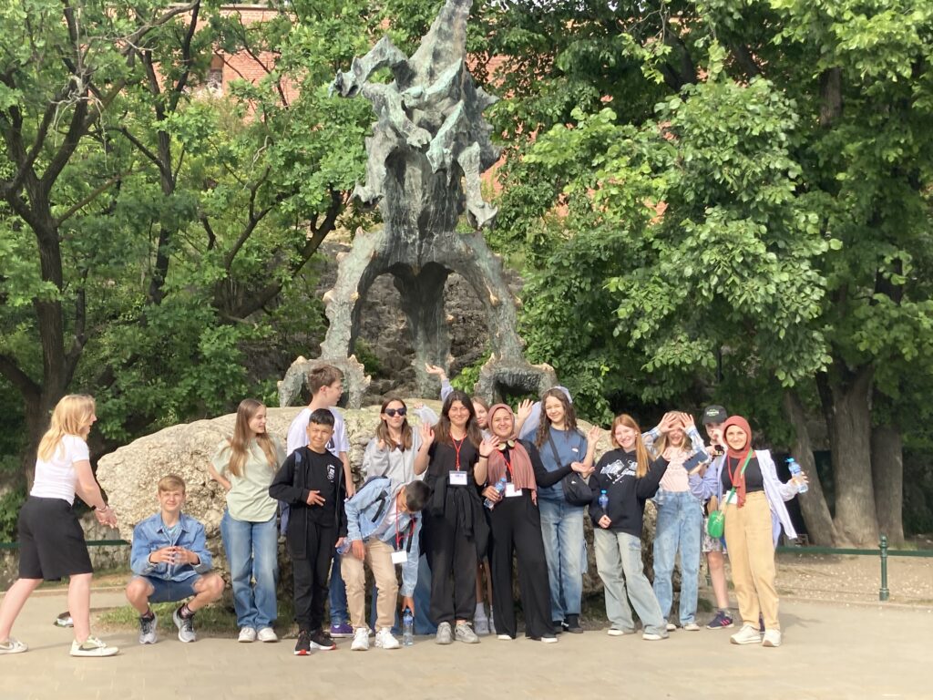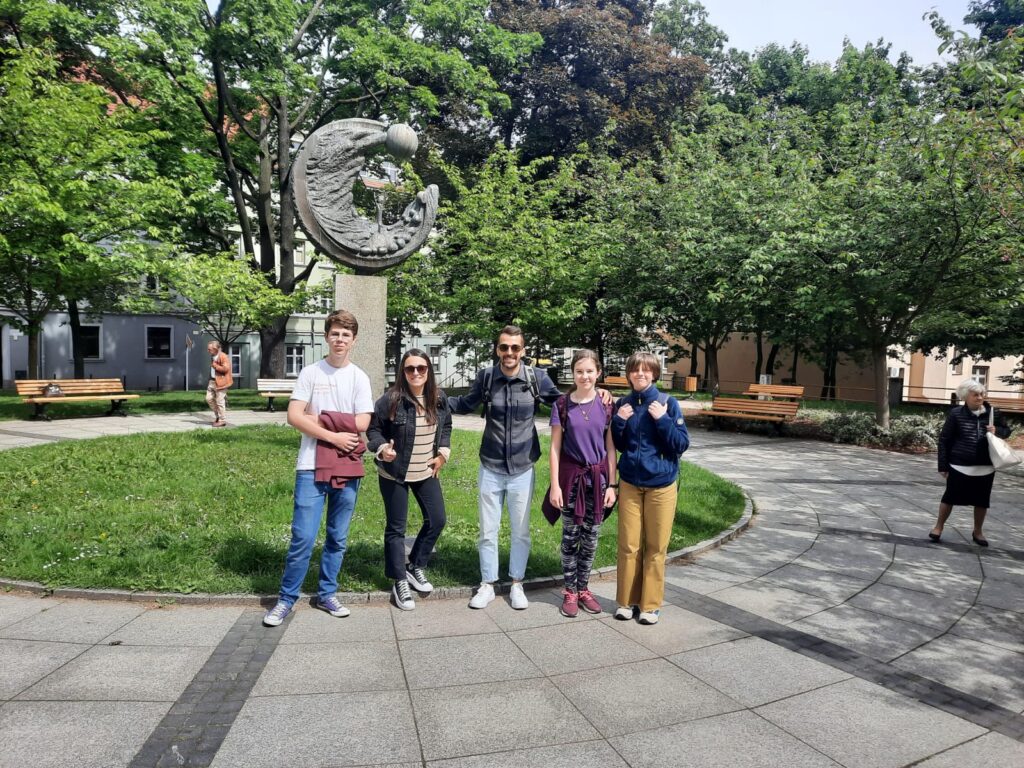 Nasi goście razem z klasą 5 brali udział w spacerze, podczas którego mieli okazję poznać naszą najbliższą okolicę z przewodnikiem ze Stowarzyszenia Parku Grunwaldzkiego, a w czasie popołudniowym odwiedzili Kolejkowo.