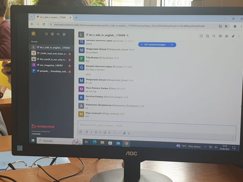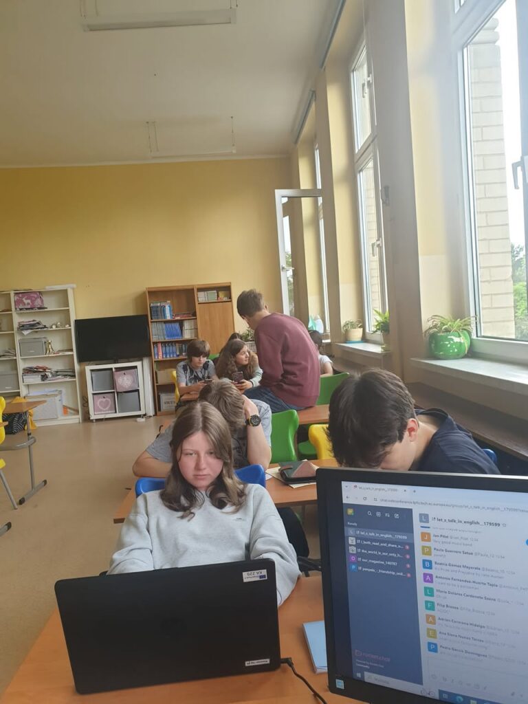 Uczniowie klasy 7C realizowali projektu o nazwie eTwinning. Nasi uczniowie uczestniczyli w ciekawej rozmowie wraz z uczniami z hiszpańskiej szkoły Colegio San Jose. Członkowie projektu przedstawili sobie nawzajem swoje państwa poprzez zrobione wcześniej kreatywne prezentacje oraz krótkie filmy opowiadające o ciekawych miejscach w ich regionach. Do powtórnego spotkania na livechacie z partnerami z Hiszpanii w ramach innowacji z języka angielskiego i programu eTwinning doszło jeszcze pod koniec roku szkolnego – w czerwcu podczas którego uczniowie wspólnie tworzyli materiały w wersji online.