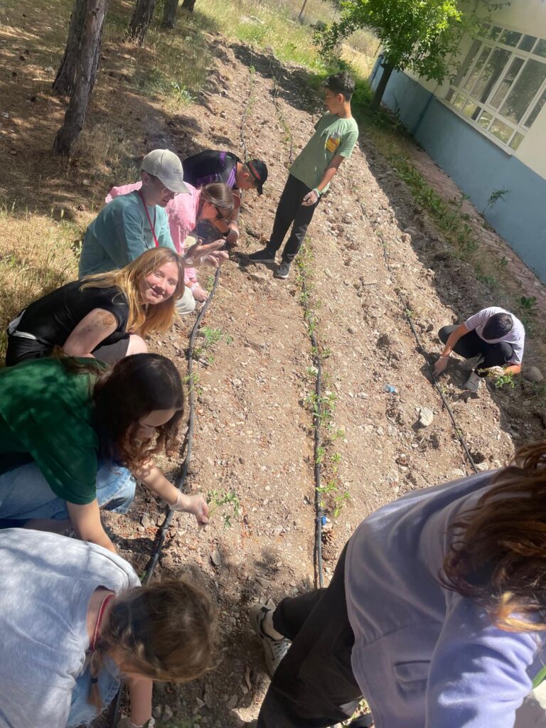 Po powrocie do szkoły uczniowie wspólnie posadzili rośliny na szkolnym trawniku na znak współpracy i przyjaźni. Następnie nastąpiło uroczyste wręczenie certyfikatów projektu wszystkim uczestnikom Erasmus +, którego dokonała nasza Pni dyrektor Anna Pomykała
