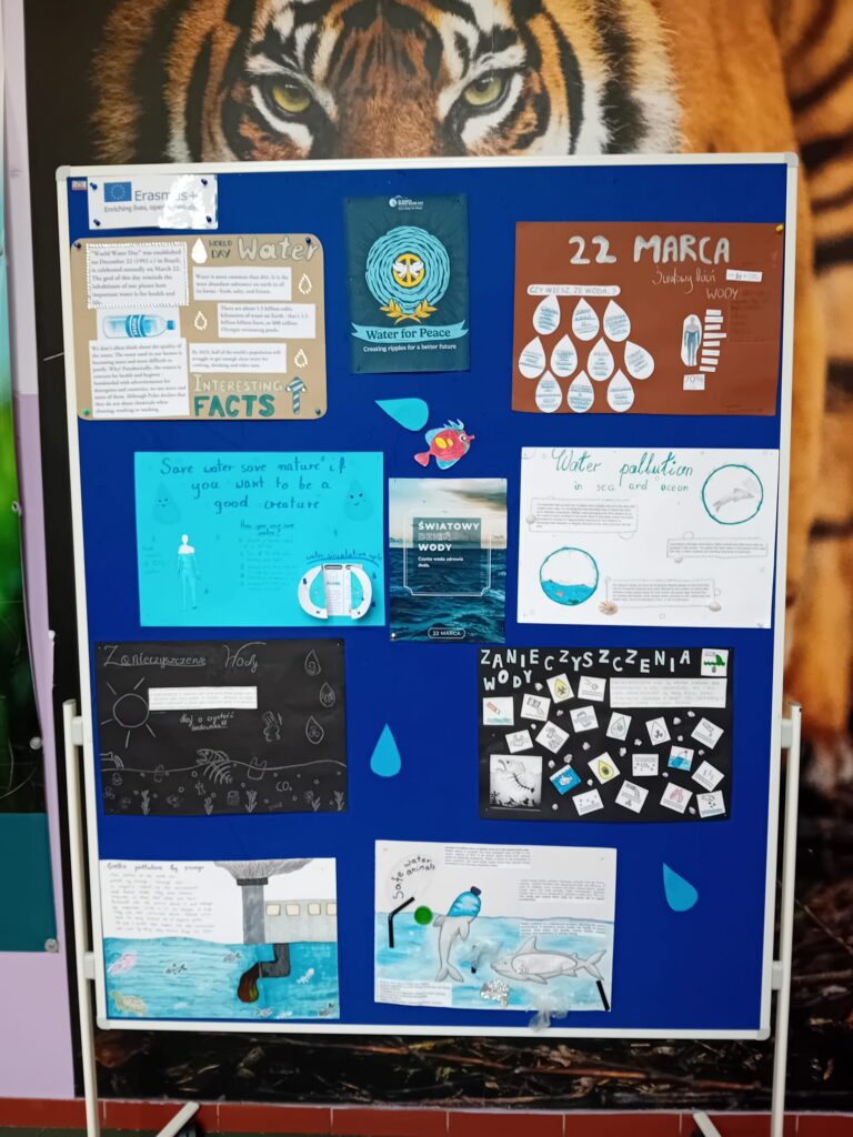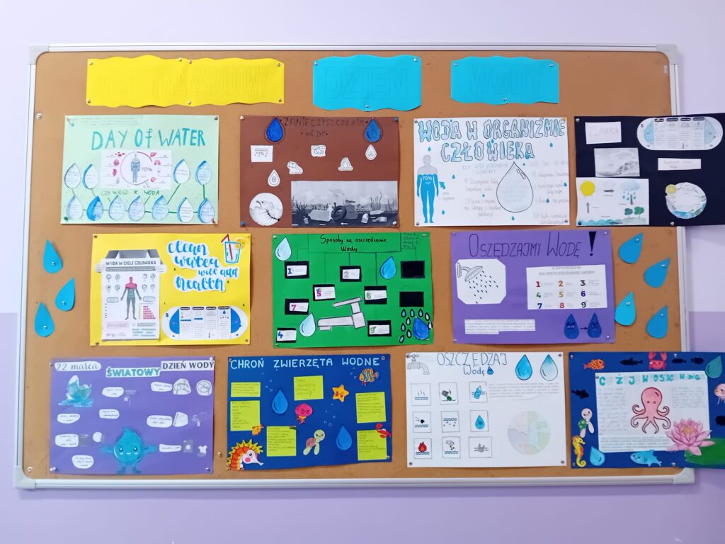 – realizując założenia programu Erasmus + uczniowie na zajęciach obchodzili Światowy Dzień Wody, tworzyli plakaty, prezentację oraz oglądali filmy o zanieczyszczeniach i ochronie wody na świecie.