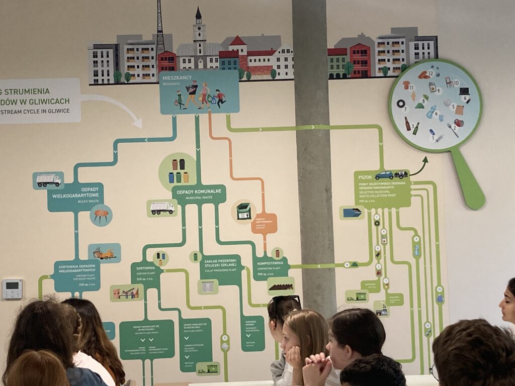 We wtorek odbyło się uroczyste spotkanie naszych gości z całym zespołem Erasmus i Panią Dyrektor. Podczas spotkania zostały wręczone symboliczne prezenty na pamiątkę owocnej współpracy. Następnie uczniowie przystąpili do wykonywania projektu artystycznego, którego tematem była oczywiście ekologia na co dzień. Trzeba było nie tylko napisać wspólnie scenariusz, ale przygotować rekwizyty, scenografię i kukiełki z materiałów recyklingowych. Po południu wszyscy udali się na wycieczkę do Katowic, gdzie goście mieli okazję zwiedzić Muzeum Śląskie.