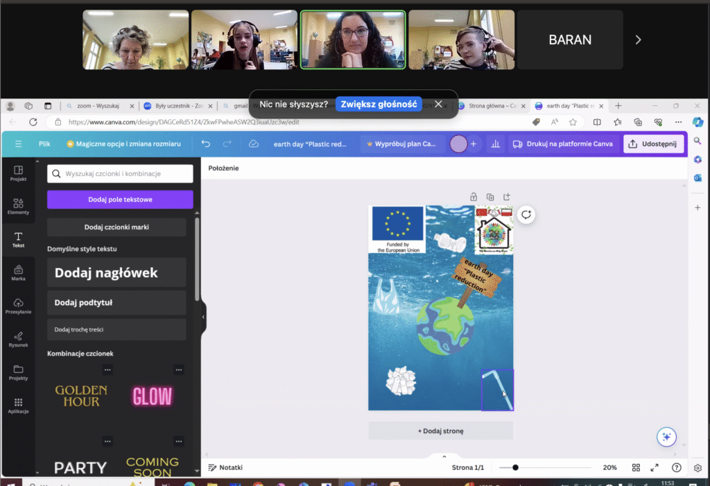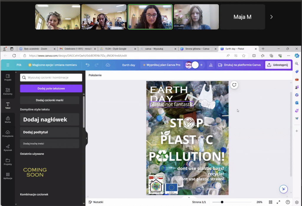 - Praca w grupach – przygotowanie logo projektu w programie „Canva”